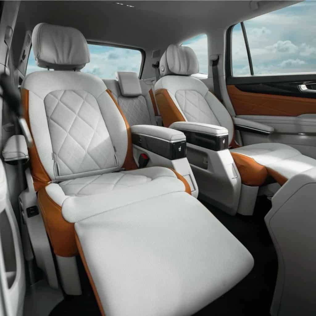 Chức năng làm mát và sưởi ghế trước, chỉnh điện 8 hướng, tựa đầu chỉnh 6 hướng, chức năng bơm hơi tựa lưng 4 hướng, chức năng nhớ vị trí ghế người lái. Hàng ghế thứ 2 độc lập, có tựa tay riêng, ghế trượt lên xuống, có lối đi riêng vào hàng ghế thứ 3.