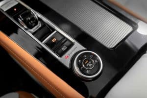 Khu vực điều khiển trung tâm thiết kế lớn với công tắc chuyển số điện tử nhỏ gọn và sang trọng, nút khởi động start/stop thiết kế thuận tiện trong tầm tay.