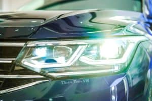 Đầu xe Tiguan Platinum Edition thay mới đèn pha và đèn LED ban ngày với tạo hình giống Volkswagen Golf thế hệ mới nhất. Đèn pha ma trận LED IQ.Lights với 24 bóng đèn LED mỗi module cho phép chiếu sáng một vùng tùy ý trên đường đồng thời tránh làm người phía đối diện chói mắt. Đèn hậu cũng có thiết kế mới.