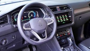 Nội thất Volkswagen Tiguan Platinum Edition đã được cải thiện để mang lại cảm giác sang trọng hơn, với những thay đổi bao gồm bảng đồng hồ kỹ thuật số và dàn nút bấm cảm ứng dày đặc hơn, cụm điều khiển trung tâm và vô-lăng. Màn hình trung tâm 8 inch, hỗ trợ Apple CarPlay và Android Auto. Điều hòa tự động 3 vùng.