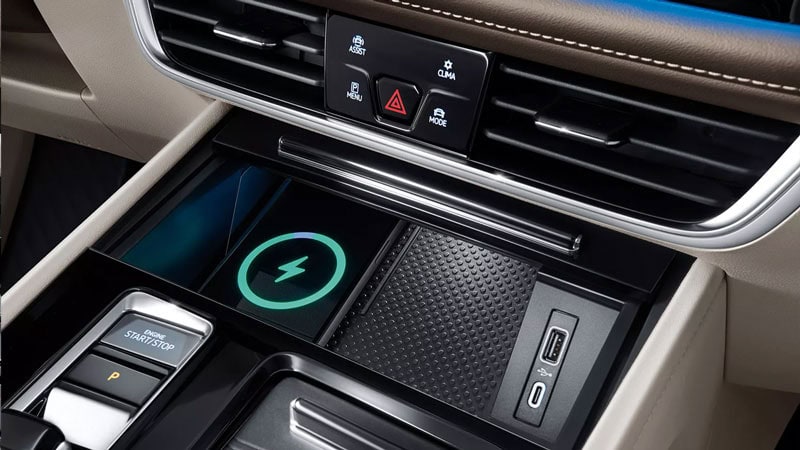 Chức năng sạc điện thoại không dây.Điều hòa nhiệt độ tự động, 3 vùng, lọc gió PM2.5, điều chỉnh cảm ứng
