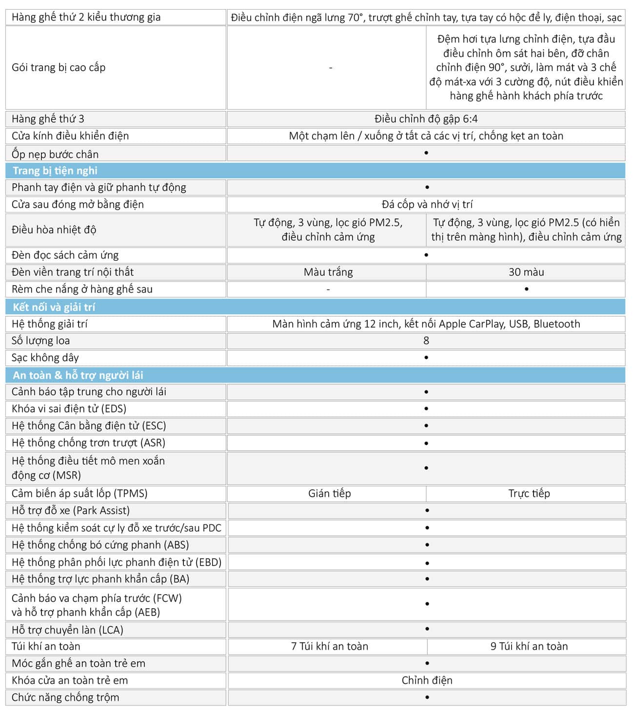 • Hai hàng ghế được bố trí riêng biệt, có bệ tì tay riêng, khay để ly riêng, cổng sạc USB, type C, hộc chứa đồ và có lối đi ở giữa.